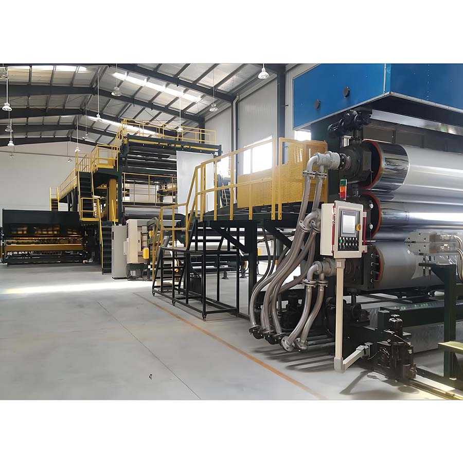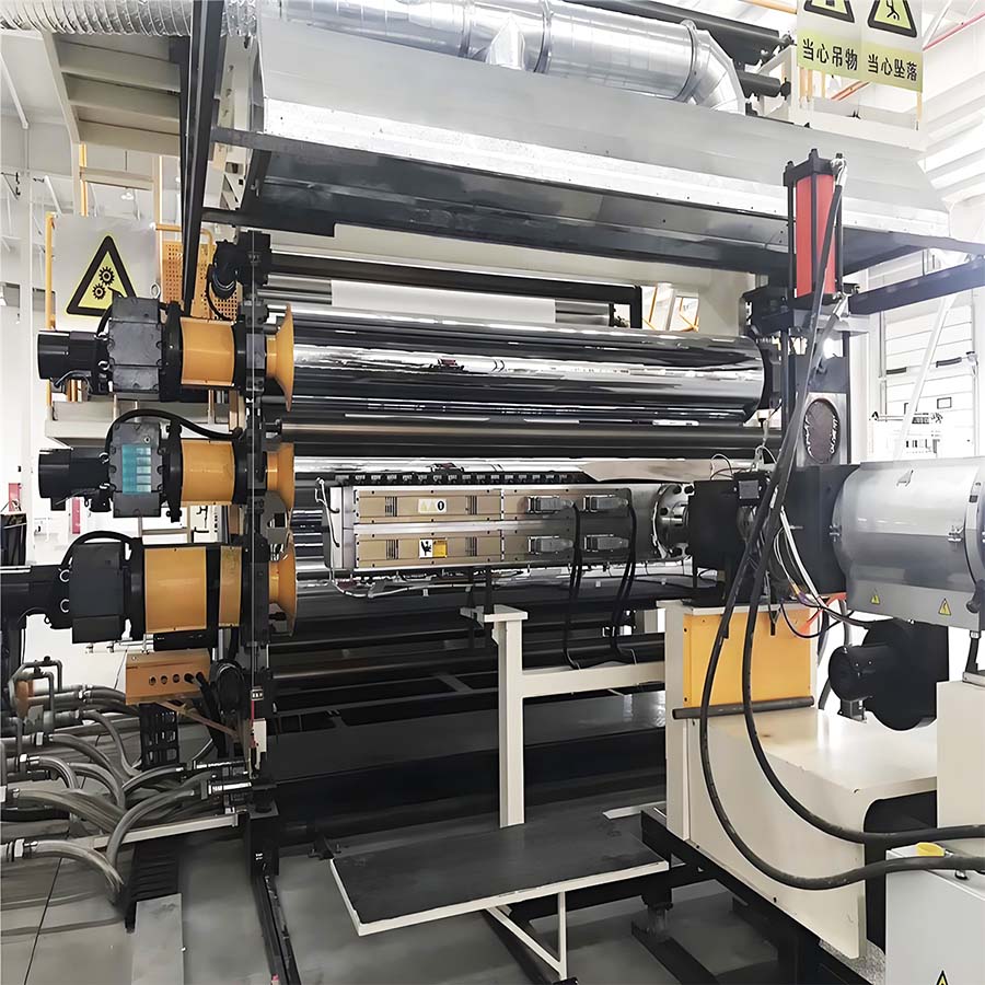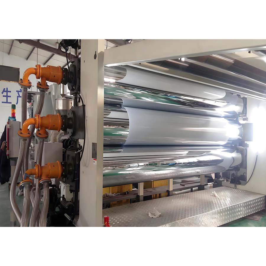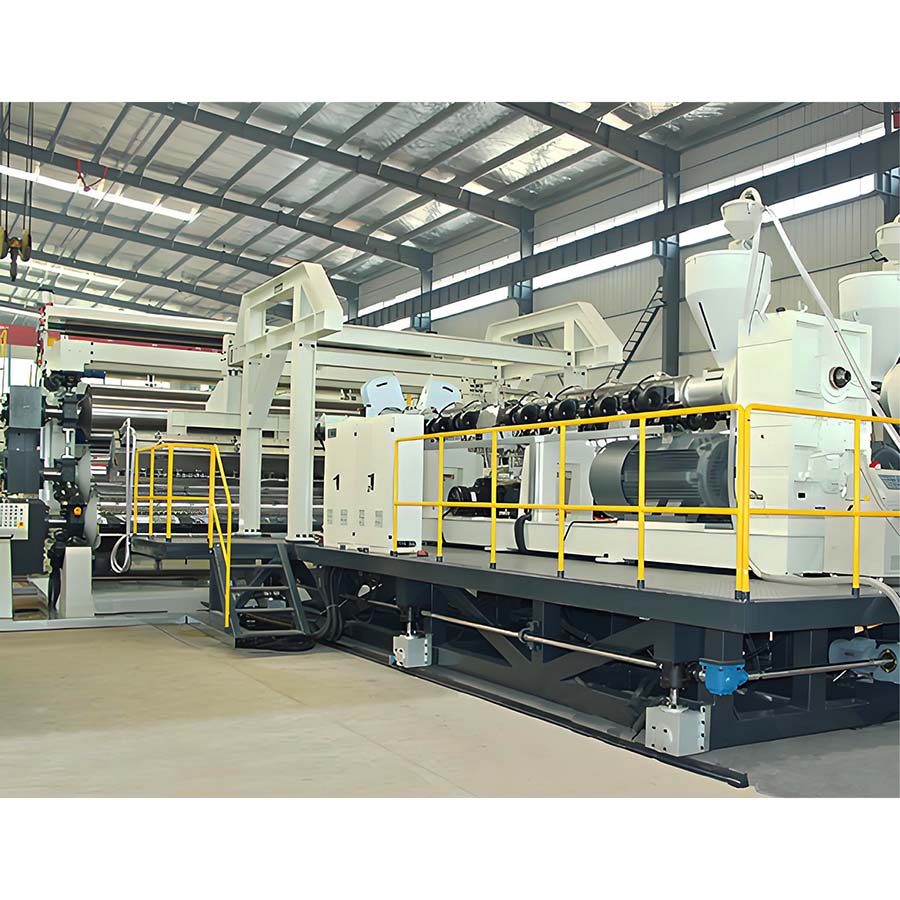 Twin-screw extruder, screen changer and hanger type mold, three-roll calender, cooling bracket, haul-off machine, cutter, winder and other auxiliary machinery.